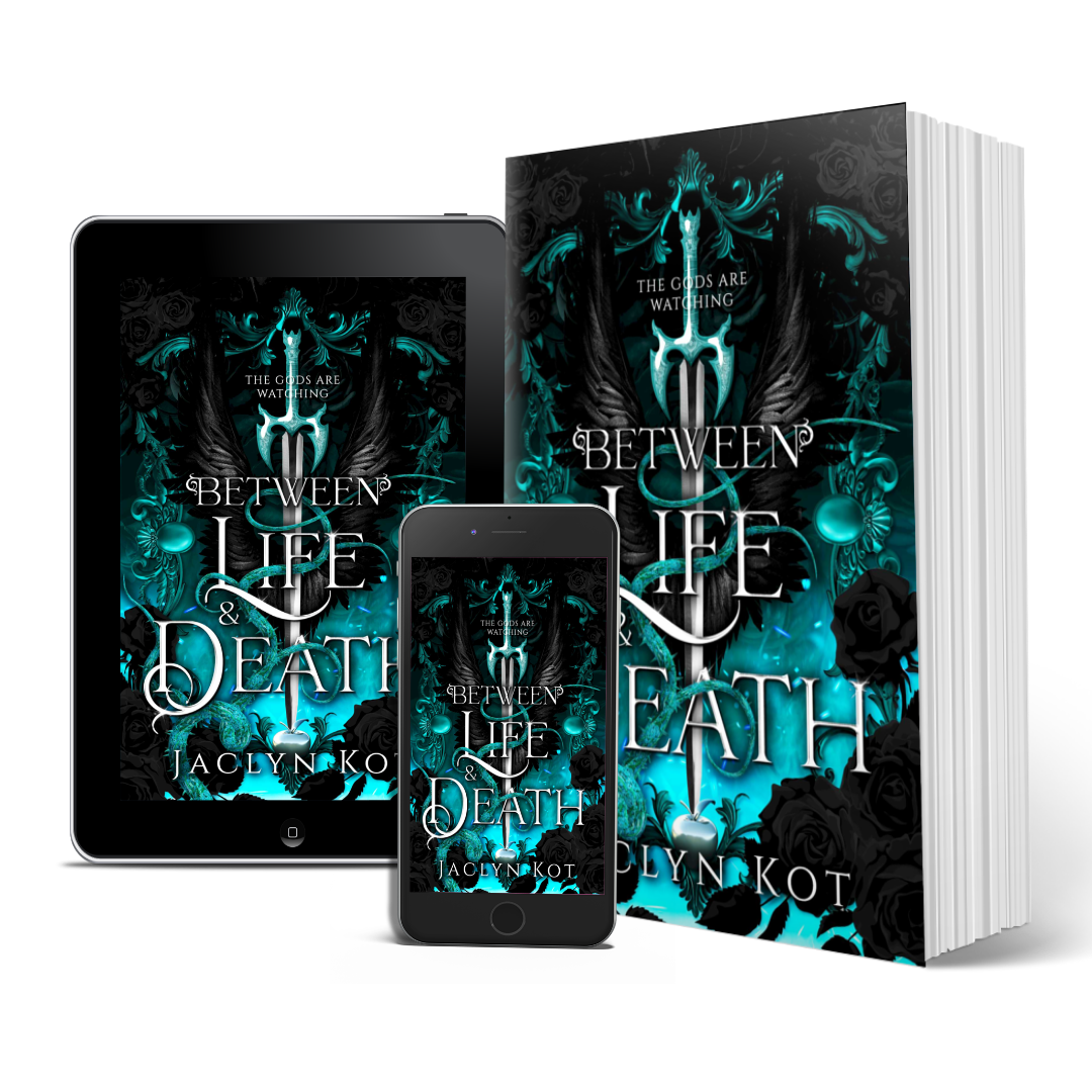 Sexy and addictive, Between Life and Death is a dark fantasy romance series featuring fated mates, forced proximity, tattooed bargains, and a swoonworthy shadow daddy who would burn the world for her. Inspired by Hades and Persephone but with a twist where gods and goddesses have vampire tendencies and Hades is 6'8", morally grey, and he's been waiting centuries for her.